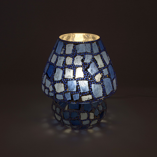 Lampe artisanale de table en verre mosaïque, champignon