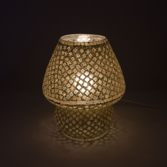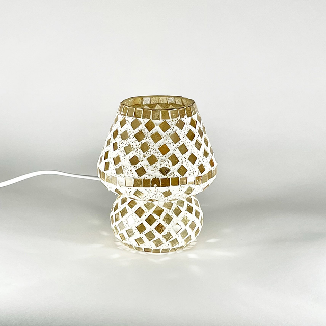 Lampe artisanale de table en verre mosaïque, champignon