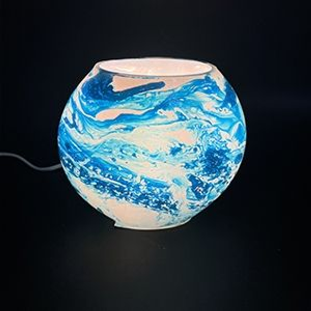 Lampe artisanale de table en verre peint, ovale